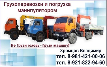 Заказать транспортные услуги крана манипулятора Вы можете позвонив нам : аренда манипулятора 3 тонны, 5 тонн, 7 тонн, 10 тонн, 12 тонн, 15 тонн, 20 тонн.Сдаются в аренду как отечественные автомобили с манипулятором (манипулятор КАМАЗ, УРАЛ, МАЗ, ЗИЛ, ГАЗ, ГАЗель), так и импортные, преимущественно, японские грузовики с манипулятором (ИСУЗУ, МИТСУБИСИ, ХУНДАЙ) есть вездеходы. Также Вы можете заказать и другую спецтехнику.