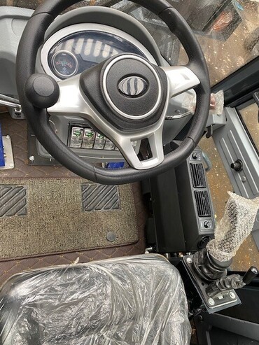 Джойстиковое управление, с ковшом, печка, 3-й контур гидравлики, подогреватель двигателя, проблесковый маячок на крыше, LED Светодиодные рабочие фонари на кабине, зуммер заднего хода, камера заднего вида