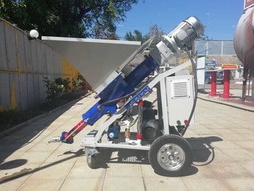 позволяющим работать как с сухими строительными смесями, так и с пастообразными материалами с фракцией до 3 мм. Длина подачи до 20 метров.